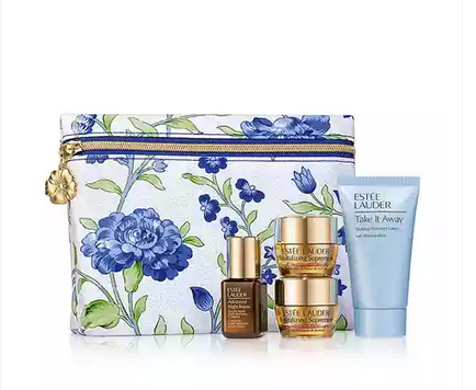 Estee Lauder gift with purchase at NORDSTROM LIVE NOW December 1, 2025 and while supplies last. Receive a cosmetics bag and deluxe samples of Take It Away Makeup Remover Lotion (1 oz.), Advanced Night Repair Synchronized Multi-Recovery Complex Serum (0.23 oz.), Revitalizing Supreme+ Youth Power Cream Moisturizer (0.24 oz.) and Revitalizing Supreme+ Youth Power Eye Cream (0.17 oz.) with your $75 Estée Lauder purchase.